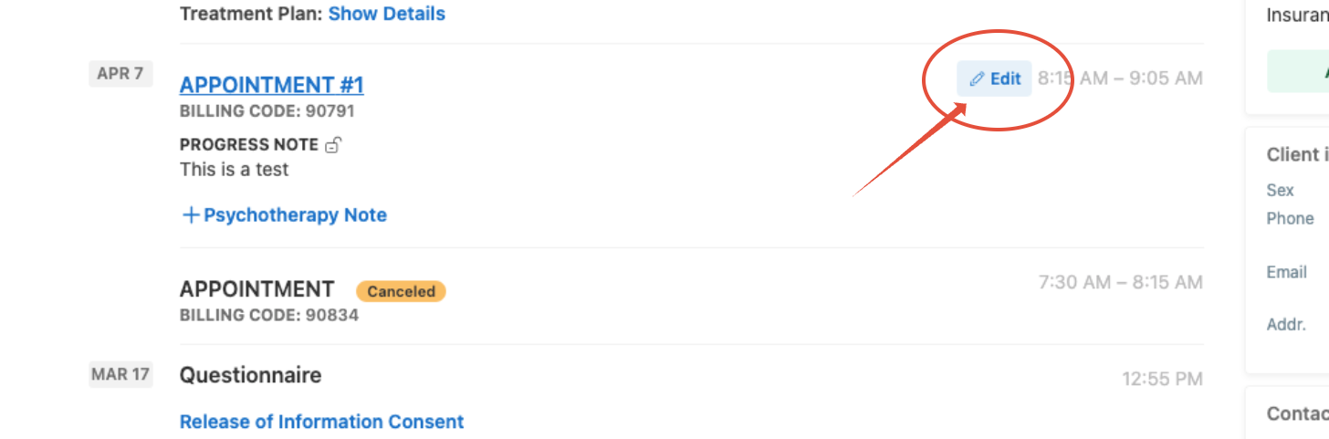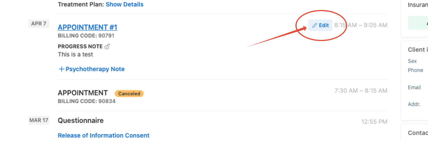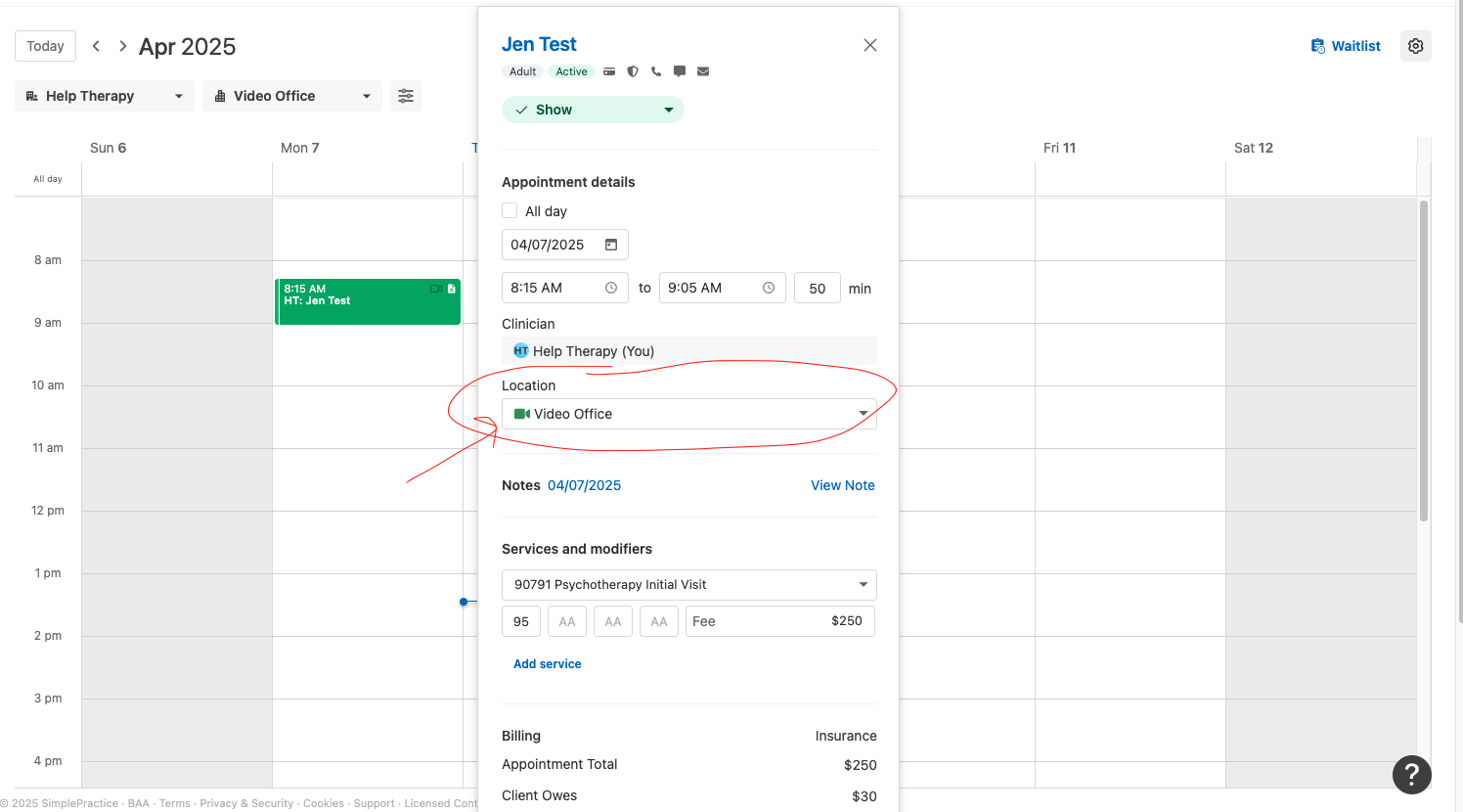 We walk through a few different options on how to complete these steps, but the quickest and easiest is to complete all from the link to the appointment on your Simple Practice calendar.